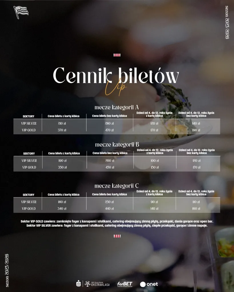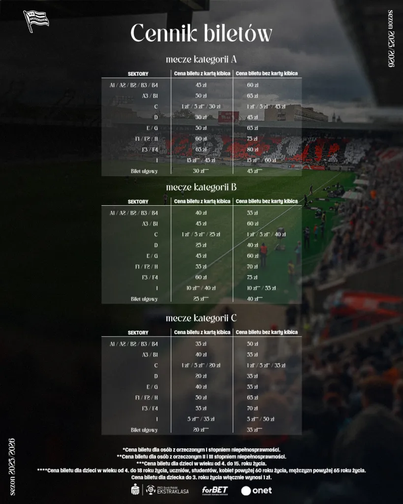 Poniżej znajdziecie cennik biletów na sezon 2025/2026.