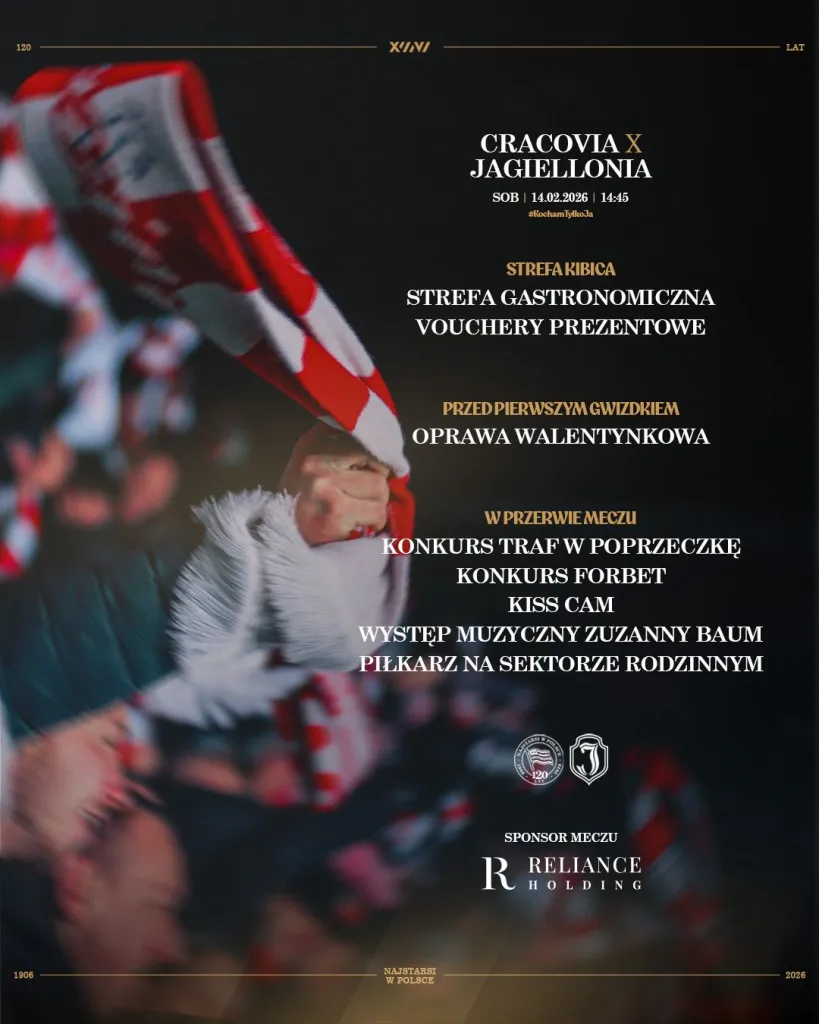 Już w najbliższą sobotę po ponad dwumiesięcznej przerwie wracamy na Ziemię Świętą przy Kałuży! Do Krakowa przyjeżdża Jagiellonia Białystok, a z racji walentynkowego terminu meczu spotkanie rozgrywamy pod hasłem #KochamTylkoJą. Tradycyjnie przygotowaliśmy dla Was wszystkie najważniejsze informacje organizacyjne. Sponsorem meczu jest firma Reliance Holding.